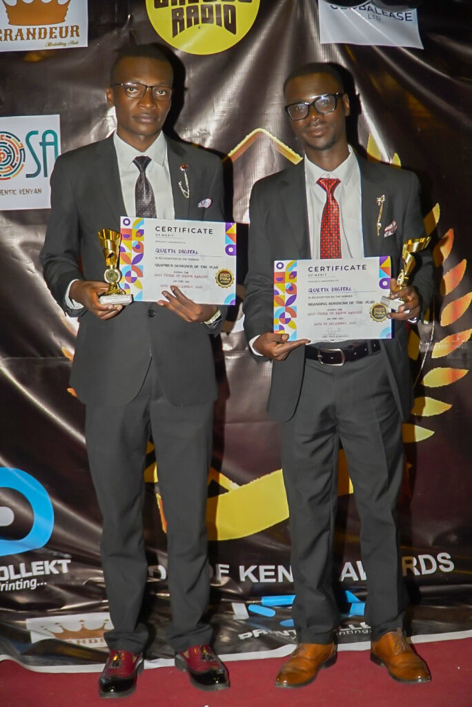 Quetix Digital emerged as one of the standout winners at the 2025 Pride of Kenya Awards (POKA), clinching two prestigious titles : Branding Business of the Year 2025 and Graphic Designer of the Year 2025.